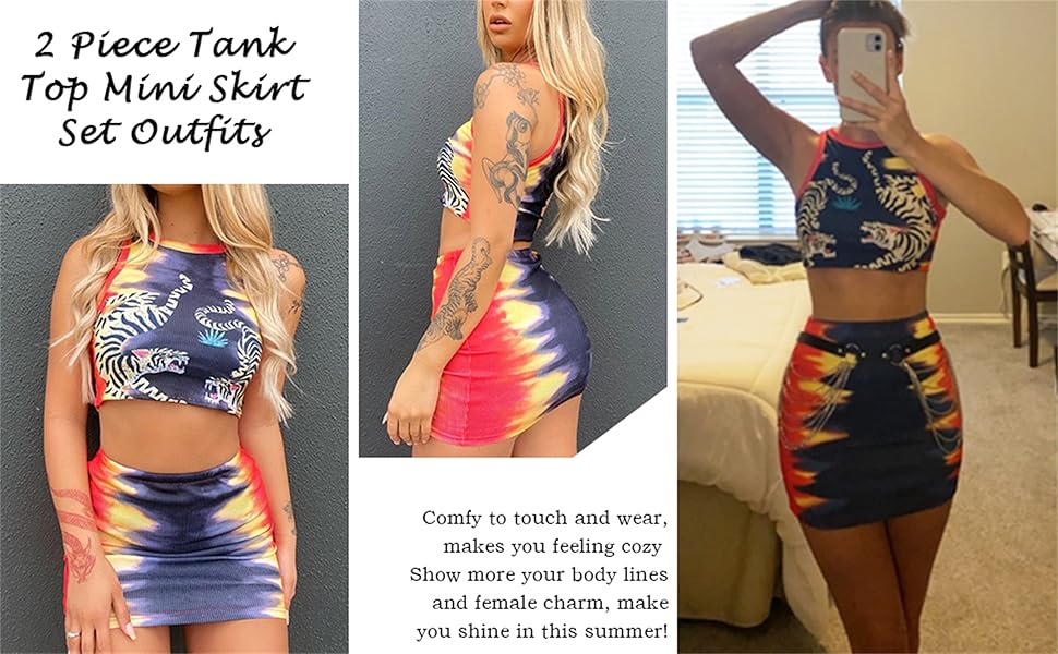 Women Sexy Tie Dye Two Pieces Set Halter Neck Bra Tops Bodycon Drawstring Stacked Mini Skirts Slim Fit Y2k Outfits A Black S At Amazon Women S Clothing Store